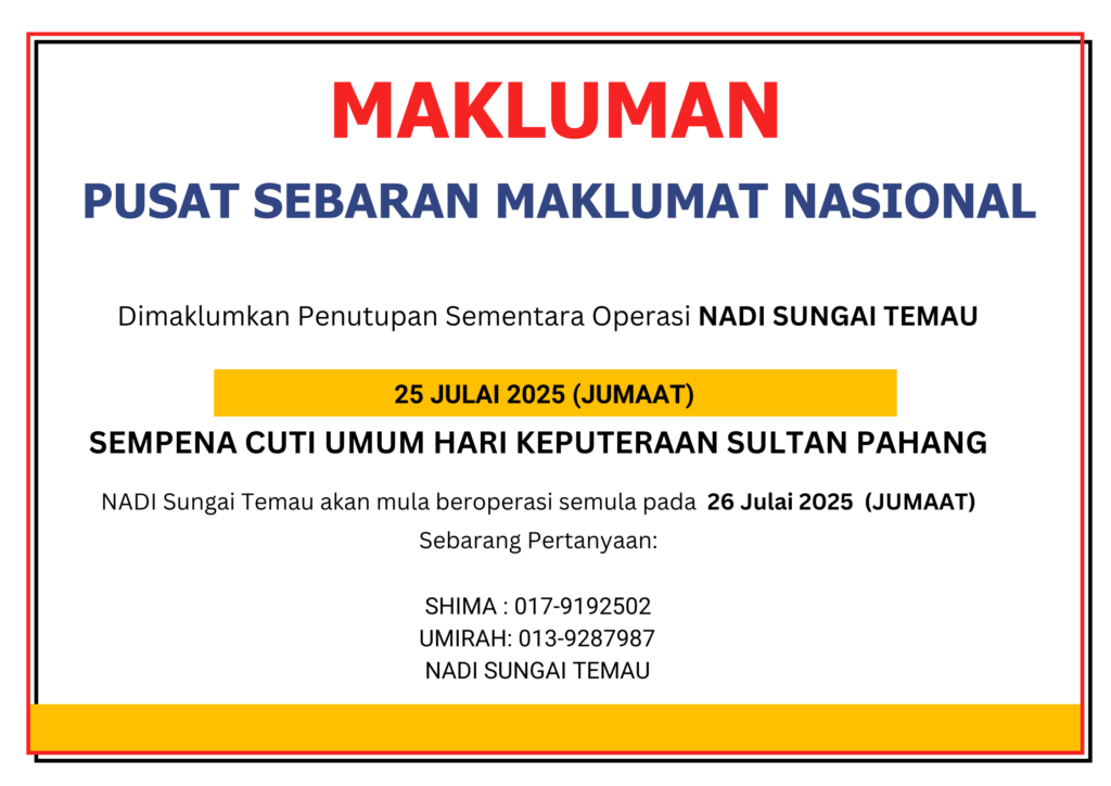 NOTIS PENUTUPAN NADI SEMPENA CUTI UMUM HARI KEPUTERAAN SULTAN PAHANG